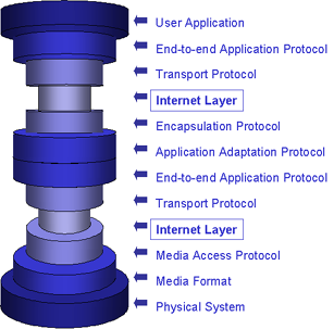 IP has been defined to work over a wide variety of applications, including most recently XML, and it is perhaps an instance of the generalization that in a layered architecture any layer can be seen to function more or less identically to any other layer. And this goes with the related observation that the practice of attempting to solve a problem simply by adding a layer of recursion is a fine example of the practice of computer science.