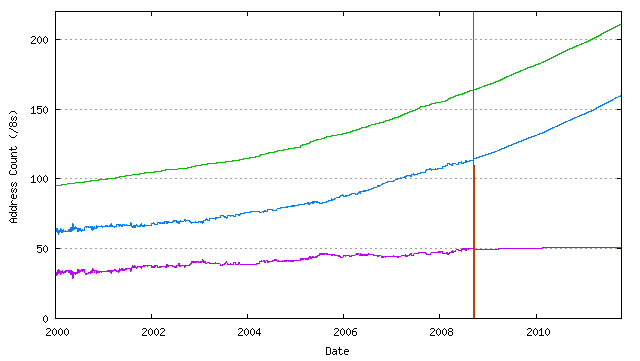 From such a perspective it should be entirely unsurprising that the next phase of the Internet's story, that of the transition of the underlying version of the IP protocol from IPv4 to IPv6, refuses to follows the intended script. Where we are now, in mid-2008, with IPv4 unallocated address pool exhaustion looming within the next 18 to 36 months, and IPv6 still largely not deployed in the public Internet, is a situation that was entirely uncontemplated and, even in hindsight, entirely surprising to encounter.
