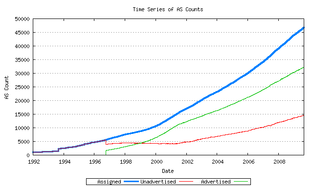So the question of the moment is that if we've managed to get through 46,988 AS numbers in August 2009, how long will the remaining pool of unallocated 16-bit AS numbers last?