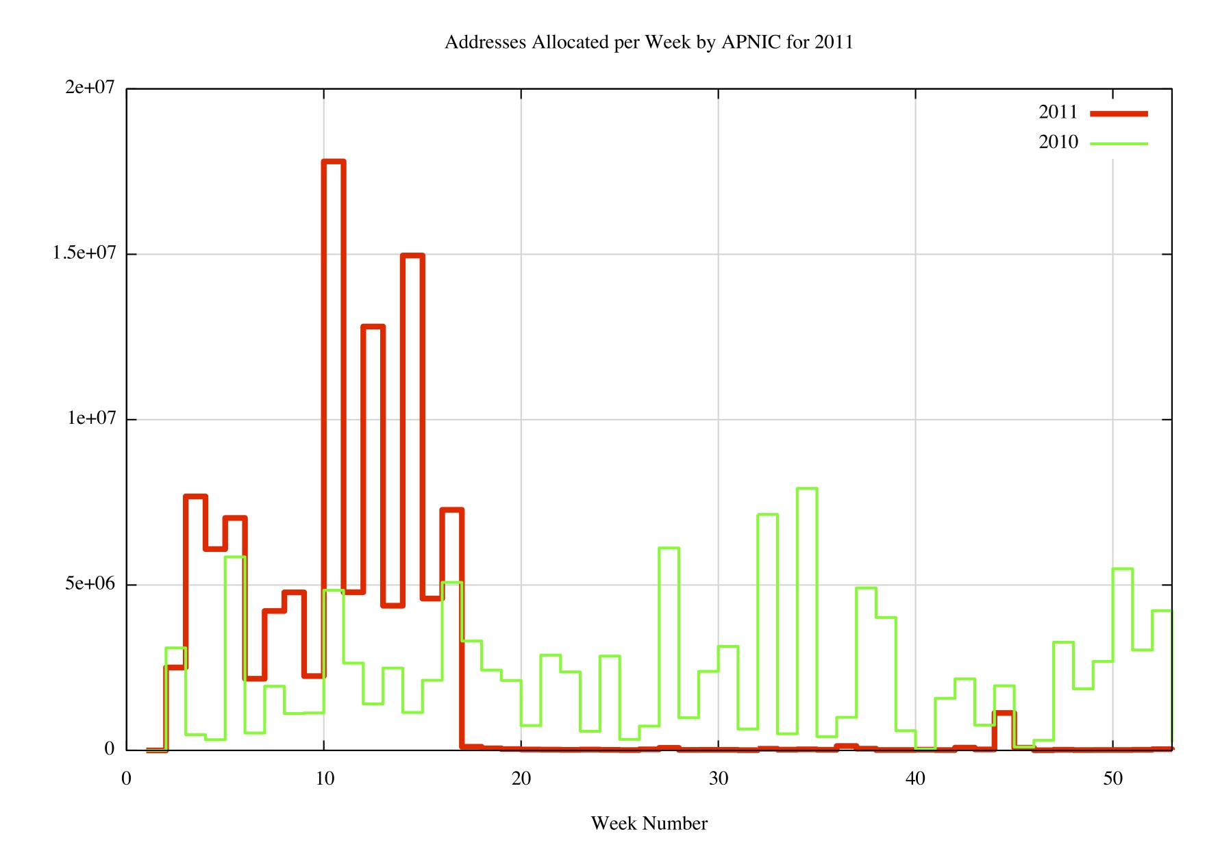 Figure 2 Weekly Address Allocation Levels: 2010 - 2011