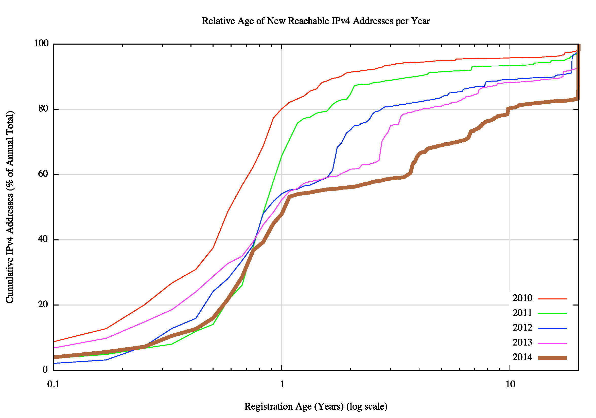 Figure 5 – Cumulative Age Distribution of Announced Addresses per year