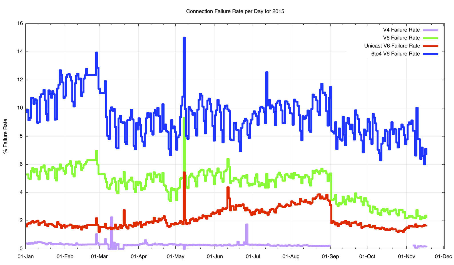 Figure 6 – IPv4 Connection Failure Rates by day – 2015