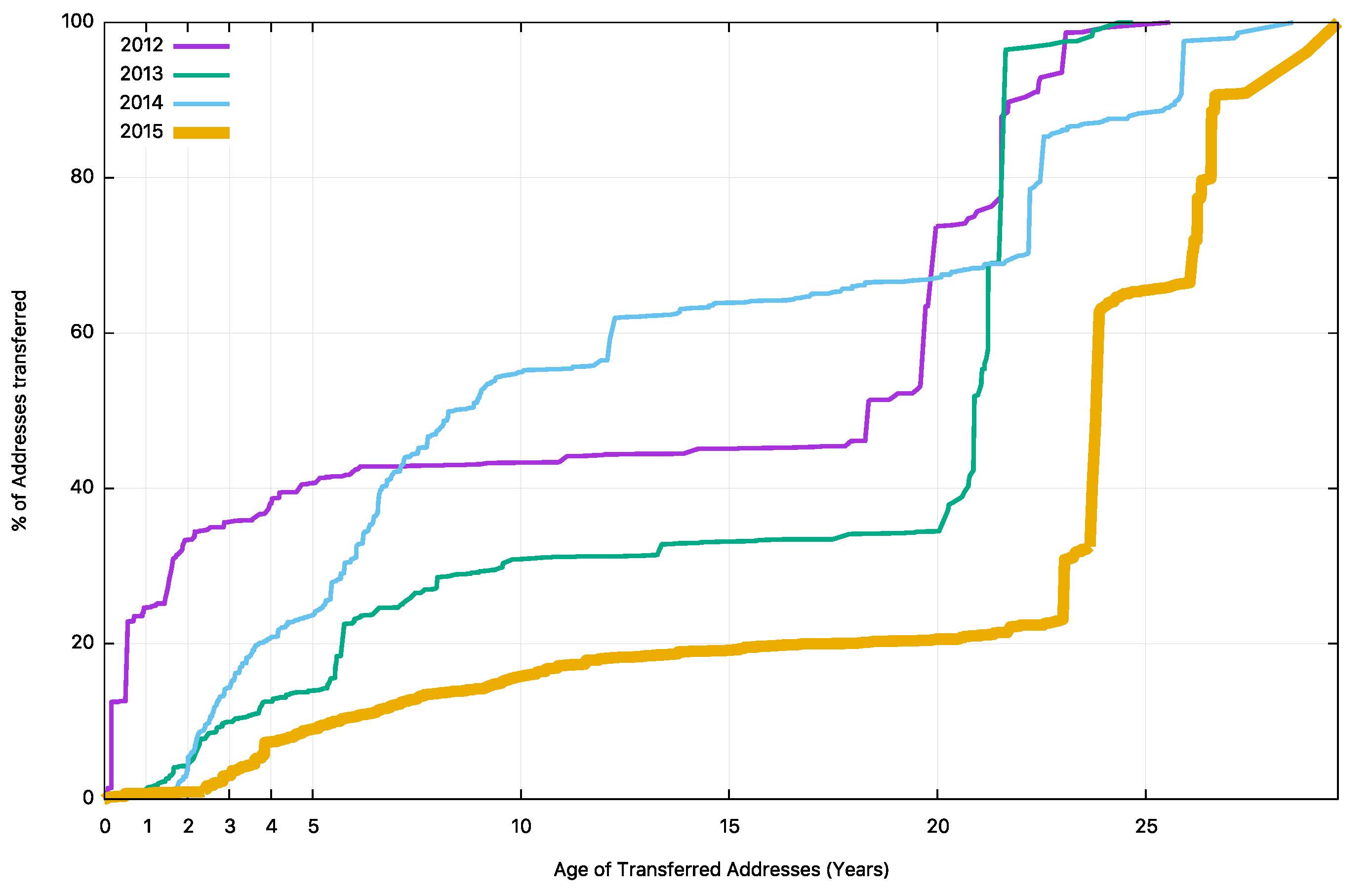 Figure 3 – Cumulative Age Distribution of Registered Address Transfers per year