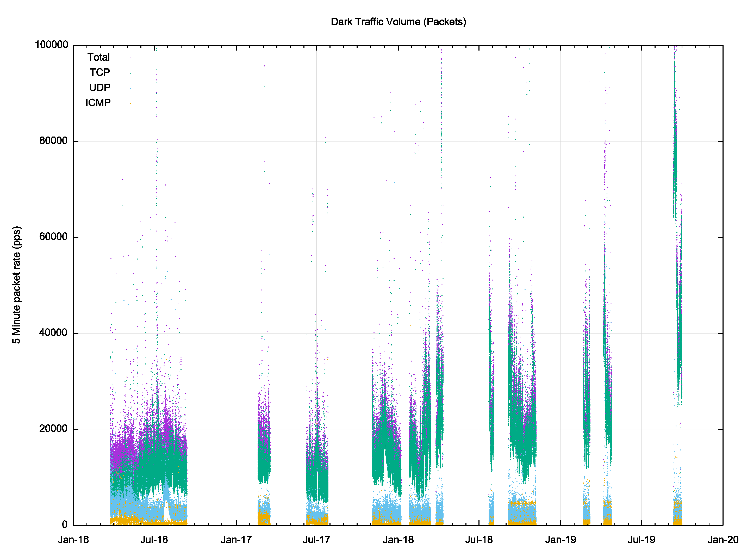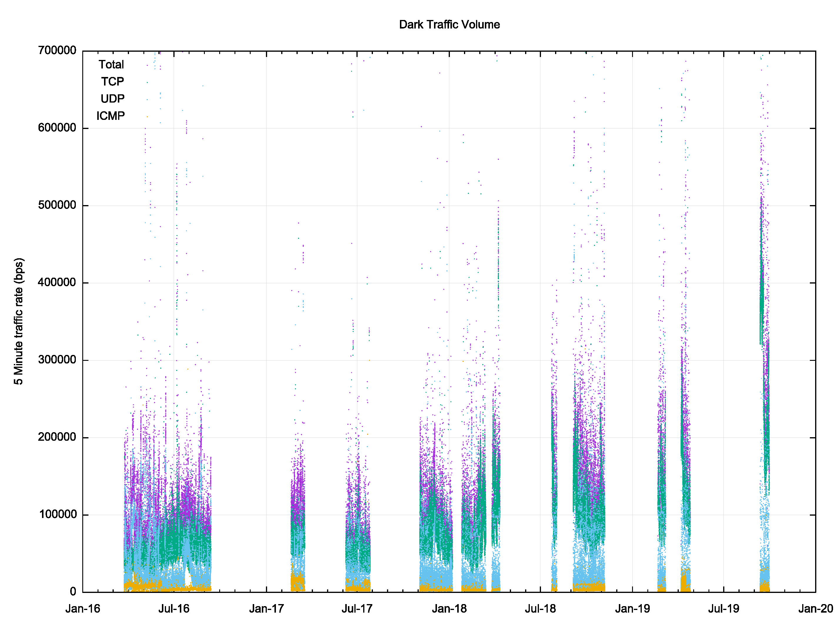 The dark traffic rate has escalated in recent times, and the traffic levels observed in 2019 appear to be some four times greater than what was observed in 2016.