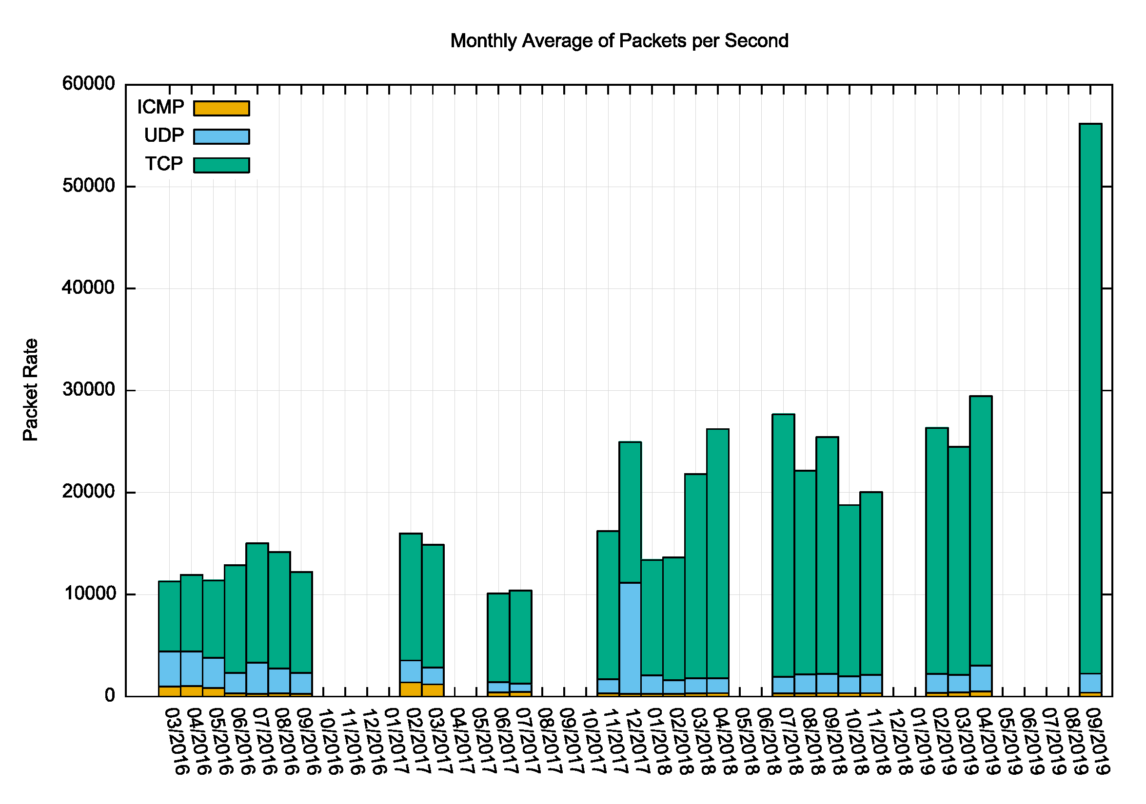 Figure 3 – Dark Traffic – monthly average packet rate per second