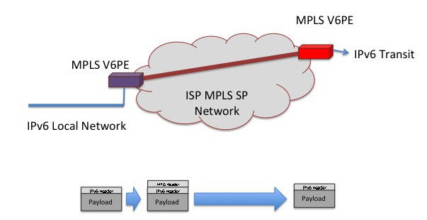The 6RD approach has many similarities to MPLS, in that an additional header is added to incoming packets at the network’s boundary, and the encapsulation effectively directs the packet to the appropriate network egress point (as identified by ingress), where the encapsulation is stripped and the original packet is passed out.