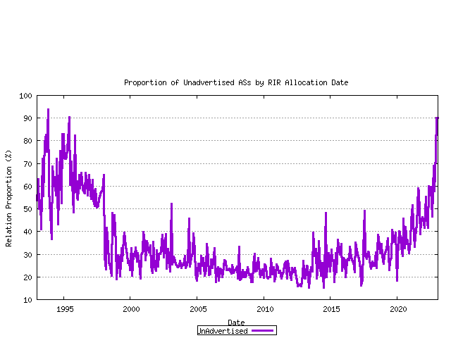 Figure 12 - Advertised / Unadvertised AS CountThe ratio of unadvertised to advertised AS numbers can be plotted over time.