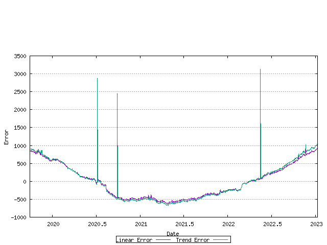 Figure 24 - Allocation Rate - linear and exponential trend best fitThe error between the original data series and the linear and exponential trend models is shown below. The closer the values in these series are to zero, the better the fit.